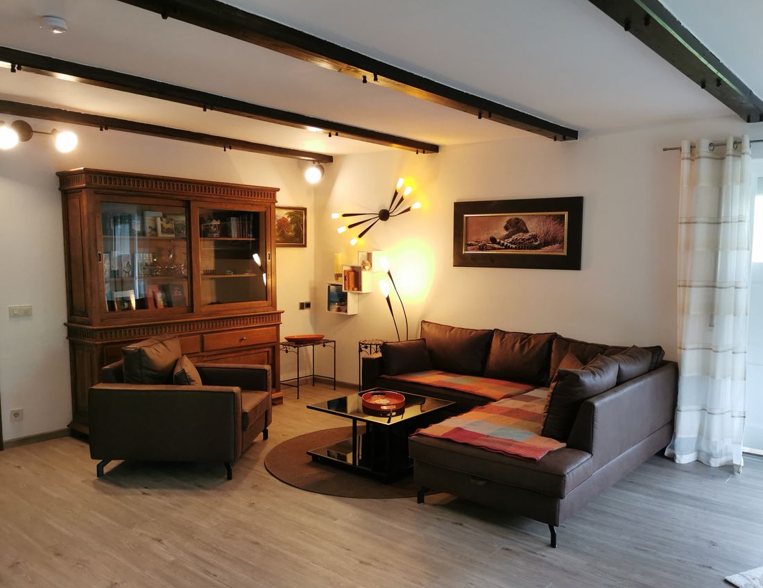 Die Ferienwohnung befindet sich in Siegsdorf - Buchenwaldsiedlung, ca. 1,5 km von der Ortsmitte entfernt. Es handelt sich um eine Erdgeschoßwohnung mit Terrasse und kleinem, abgeschlossenem Garten.Mit 100qm bietet sie ausreichend Platz für vier Personen. Die Wohnung hat ein Schlafzimmer, ein Wohnzimmer mit Kaminecke, Esszimmer, Küche, Bad und ein getrenntes WC.Die Terrasse ist überdacht und bietet einen weiteren Essplatz. Darin schließt sich einer kleiner abgeschlossener Garten mit einer weiteren Sitzecke an.