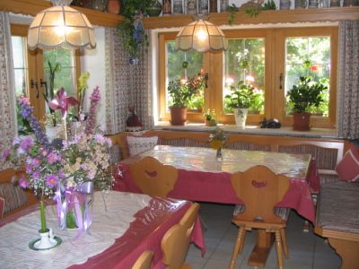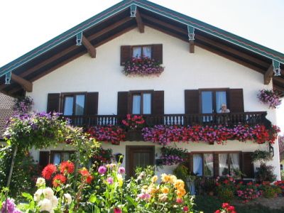 Gut geführtes, gemütlich eingerichtetes Gästehaus in Siegsdorf/Chiemgau im bayerischen Stil. Aufenthaltsraum mit TV und gemütlichem Kachelofen. Große Liegewiese und Terrasse mit Sommerhaus im Almstil. Parkplätze am Haus, Radl- und Motorradgarage vorhanden. Erweitertes Frühstück, Skilift und Loipe in Hausnähe.